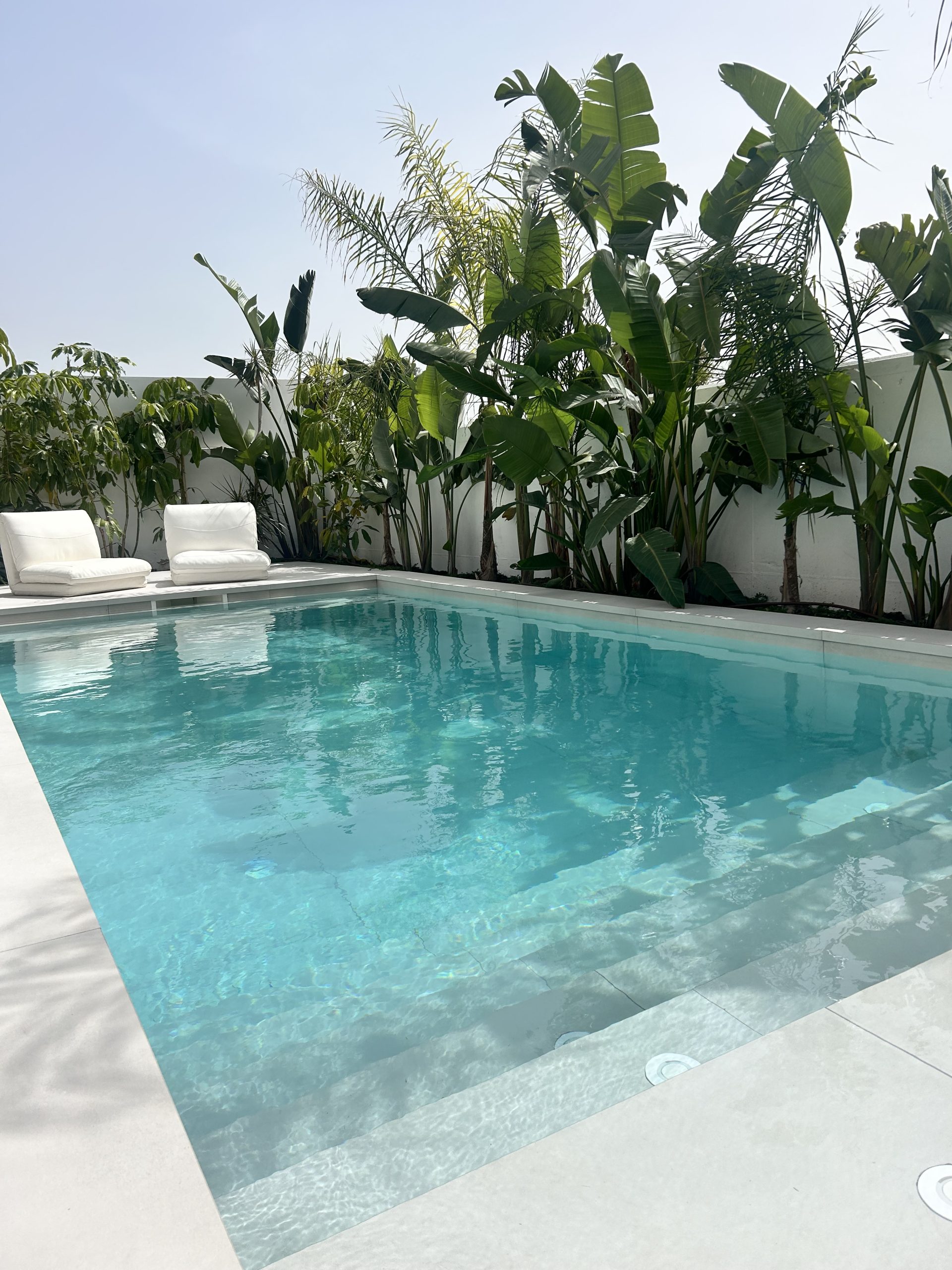 🥈 2º lugar – Lujo minimalista: blanco roto, agua turquesa y la sensación de estar en una playa privada sin salir de casa.
