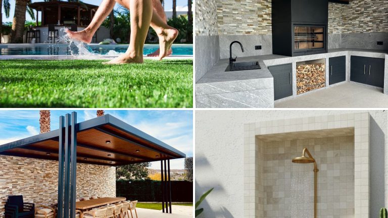 Además de la piscina, valora si añadirás ducha exterior, césped, pérgola o zona de barbacoa.